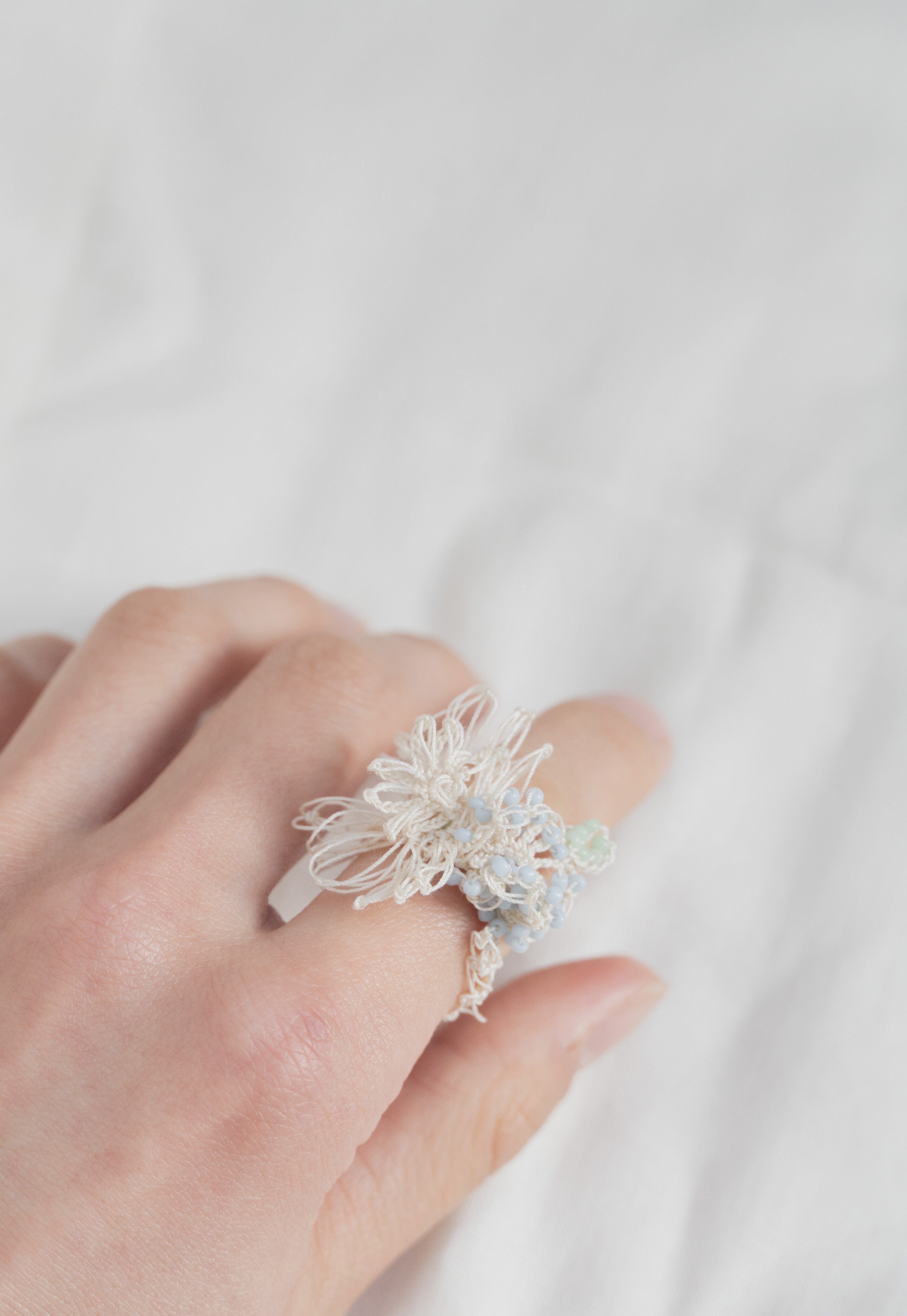 コットンの糸とフランスのヴィンテージビーズで編みました。