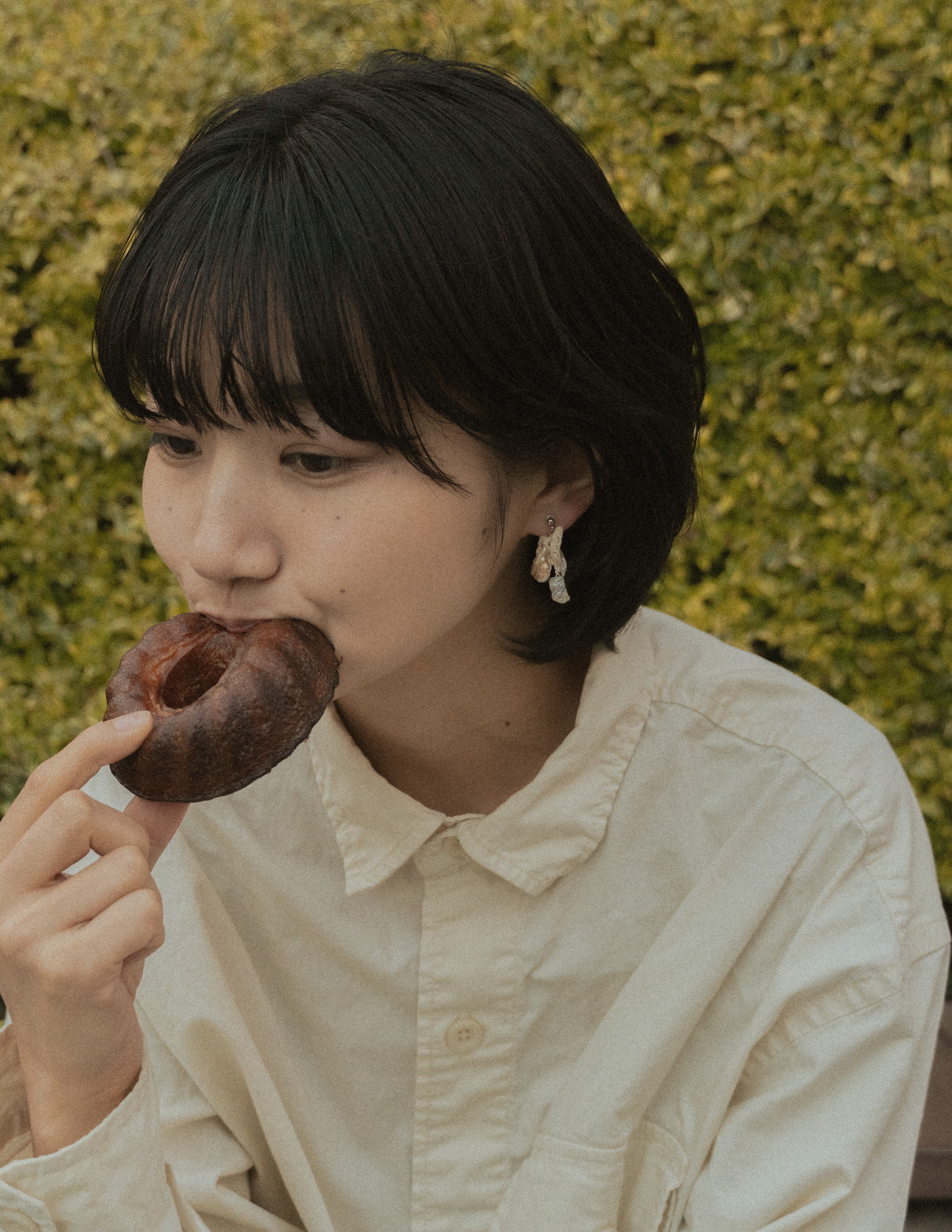 不揃いの淡水パールを使って、晩春から初夏の情景を表現しました。